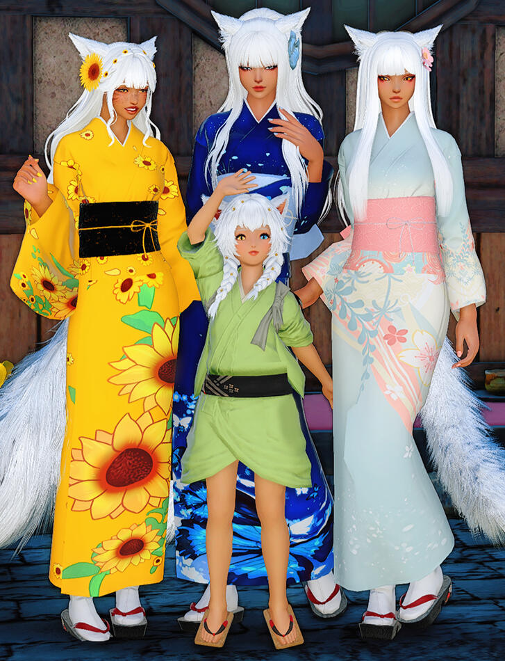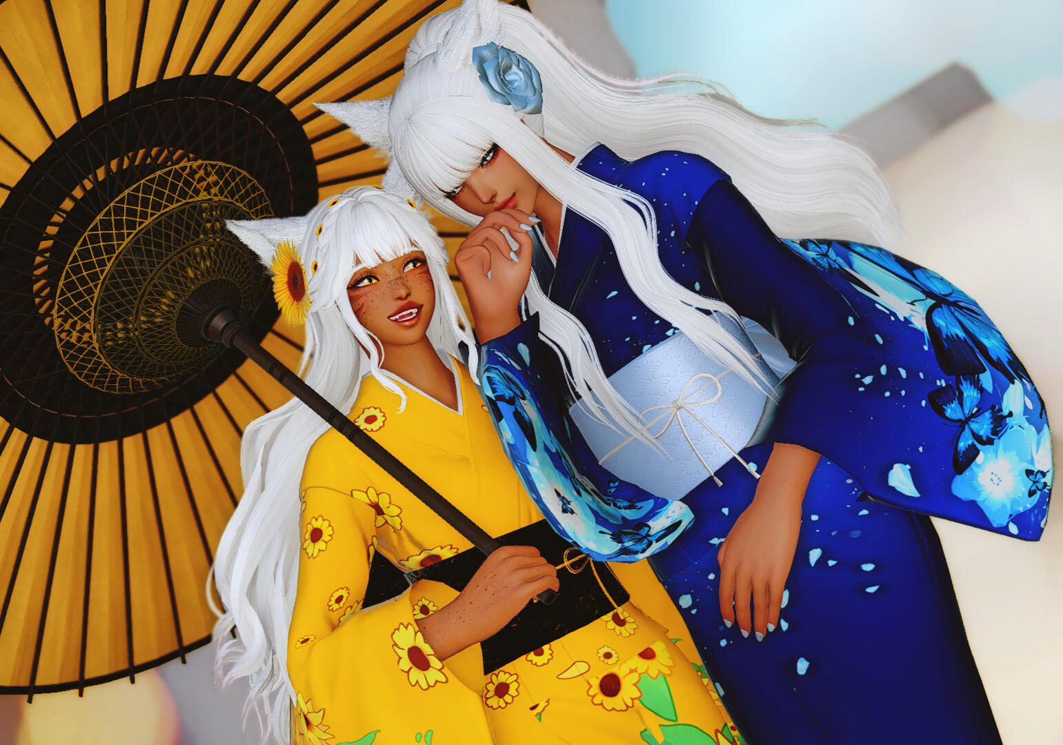 Sol's mother is a renowned Ikebana florist in Kugane, known for her grace, poise, and deep understanding of floral artistry. She runs a well-regarded flower shop, Three Blossoms, lovingly named after her three daughters. This is where she creates arrangements that convey emotion and meaning, believing that flowers speak where words cannot. She's a warm and nurturing mother, encouraging Sol’s creativity and individuality. Her presence is a calming force, embodying elegance and quiet strength, much like the cherry blossoms she holds dear. She wears three cherry blossoms in her hair to symbolize her three daughters Sol, Lunae, and Estella.She passed on her knowledge of Ikebana and fan dance to Sol, encouraging her to express herself while learning discipline and poise.Sunflowers are a deeply sentimental connection for Sol to her mother, who lovingly called her her "little sunflower." As a child, Sol would have heard that phrase often, a gentle reminder from her mother that, like a sunflower, she was a bright and radiant presence in the world. Her mother saw her as a source of joy, much like the vibrant blooms that follow the sun, bringing warmth and light wherever they went.The nickname, "little sunflower," was more than just a term of endearment-- it was a way for her mother to express how she saw Sol’s boundless energy, her innate kindness, and her ability to bring a smile to anyone’s face. Sunflowers, known for their resilience, also symbolize growth and optimism, and Sol's mother used the nickname to remind her that, no matter how tough life became, she had the inner strength to thrive and continue spreading light to others.